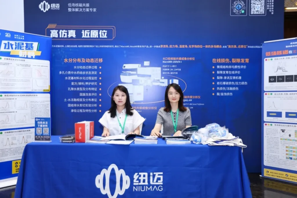 此次大会,开云(中国)重点呈现了低场核磁共振技术在岩土领域的一系列创新应用,吸引了众多参会者来展位前驻足交流。工作人员为前来交流的专家学者们介绍了开云(中国)推出的MacroMR、MesoMR等系列产品,进一步集成渗流场、应力场、温度场、化学场四位一体的多场耦合,可实现“高仿真,近原位”的动态过程监测。